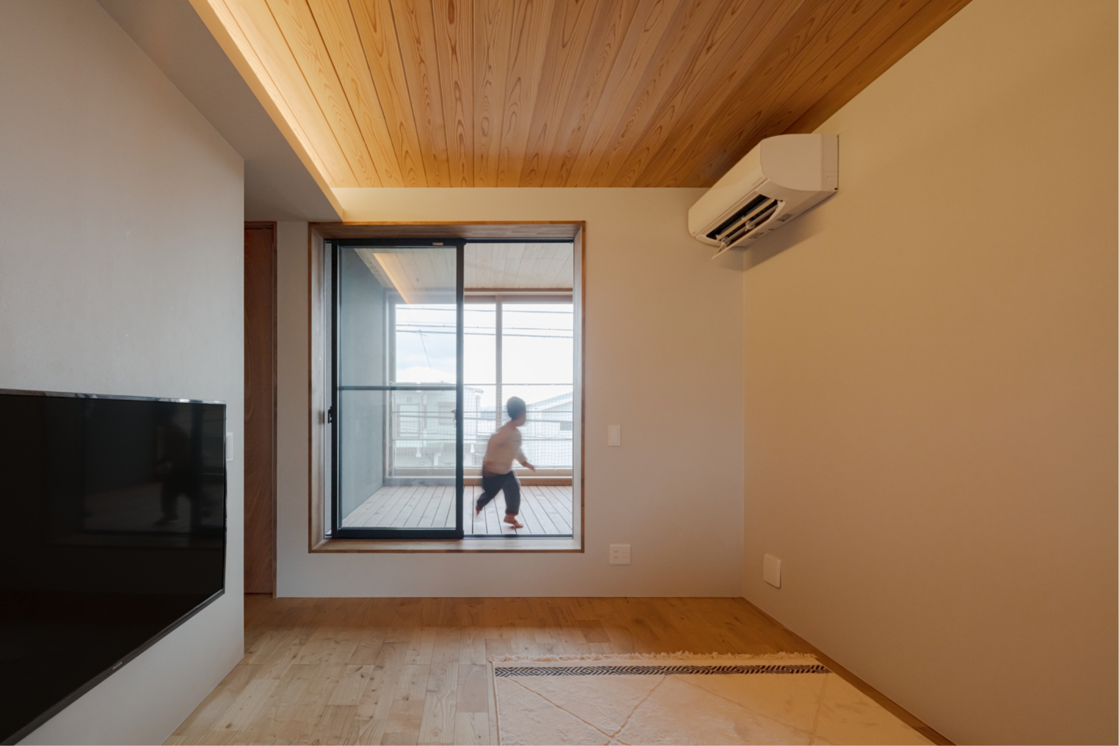 南北を通して内外が呼応するように計画することで日々の暮らしの中で時間のうつろいを感じ、自分たちらしい居場所を構築できる住まいとなることを目指した。